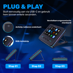 Het deck werkt met o.a. OBS, Streamlabs, Photoshop, Discord, Spotify en andere veelgebruikte software.